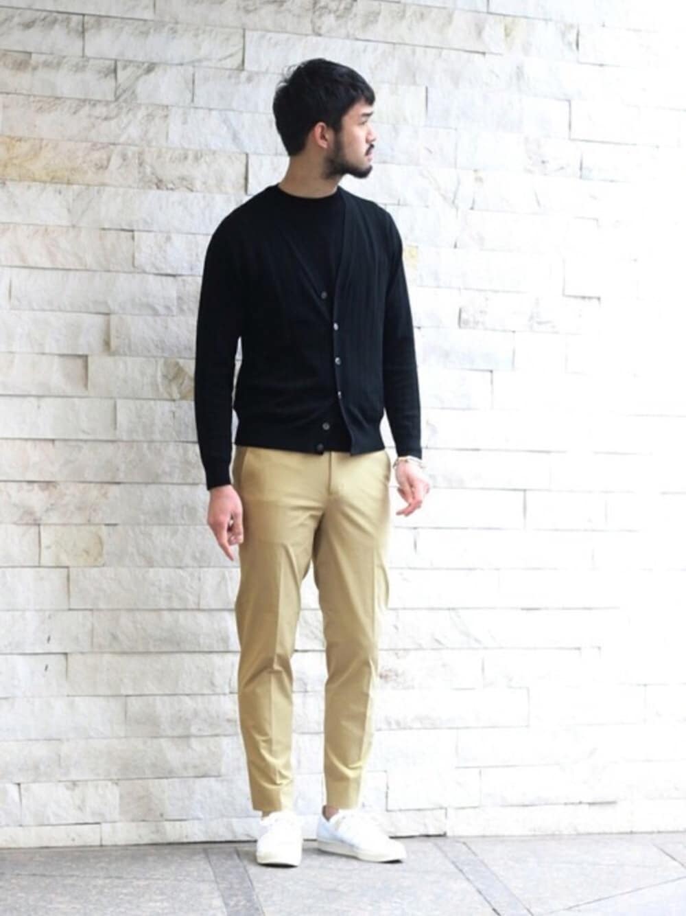 トップスを『ブラック×ブラック』でまとめた、シックなレイヤードスタイル提案。