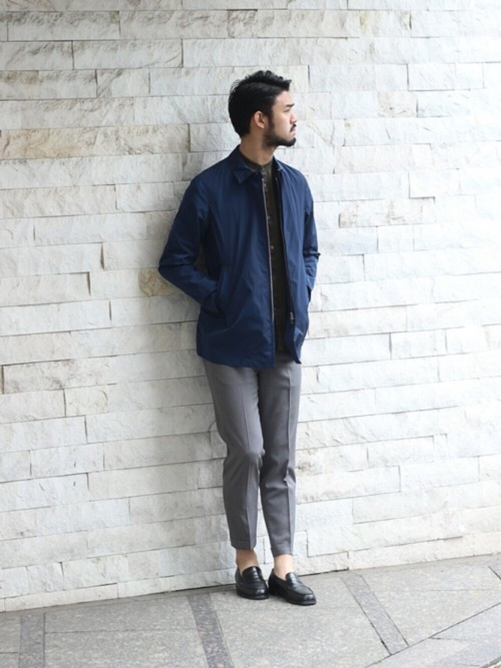 「Gipitex社」の高密度なナイロン素材を使用したショートコート。ステンカラーコートをよりスマートに見せる為にショート丈に設定し、フロントはZIPにすることでスポーティーな要素もプラスしています。