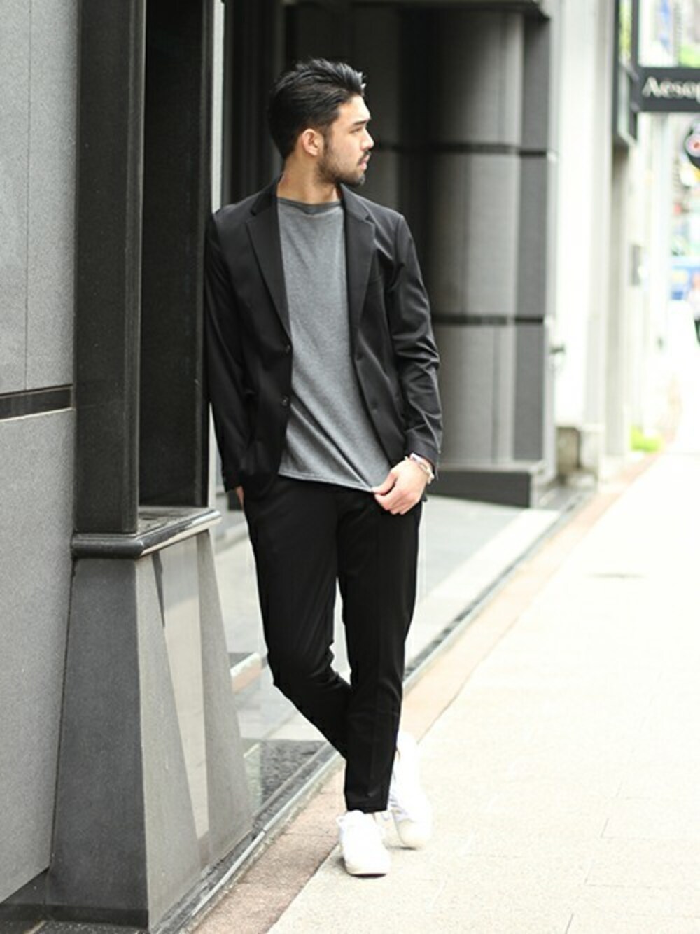 高い伸縮性、通気性、吸水速乾性を持つ「T400」というポリエステル系素材を使用したセットアップアイテム。足元は、EDIFICE別注のsuperstarがクリーンな印象をプラスしてくれます!