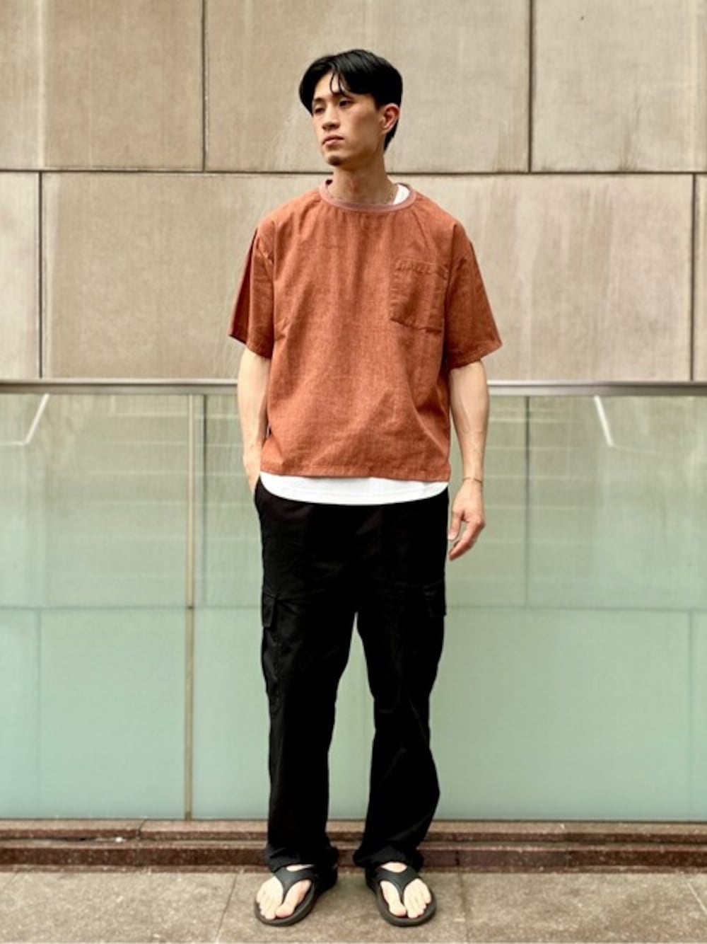 COOL MAX BELGIAN LINEN P/O S/S 上質なコットン×リネンの生地に、吸水・速乾性に優れた機能素材COOL MAXを混紡したオリジナルのシャツです。 普段サイズ:M/着用サイズ:M サイズ感:程よくゆとりがあります。 素材感:しっかりとしたシャツのような素材感です。 着心地:手触りもサラッとしているので気持ち良いです。