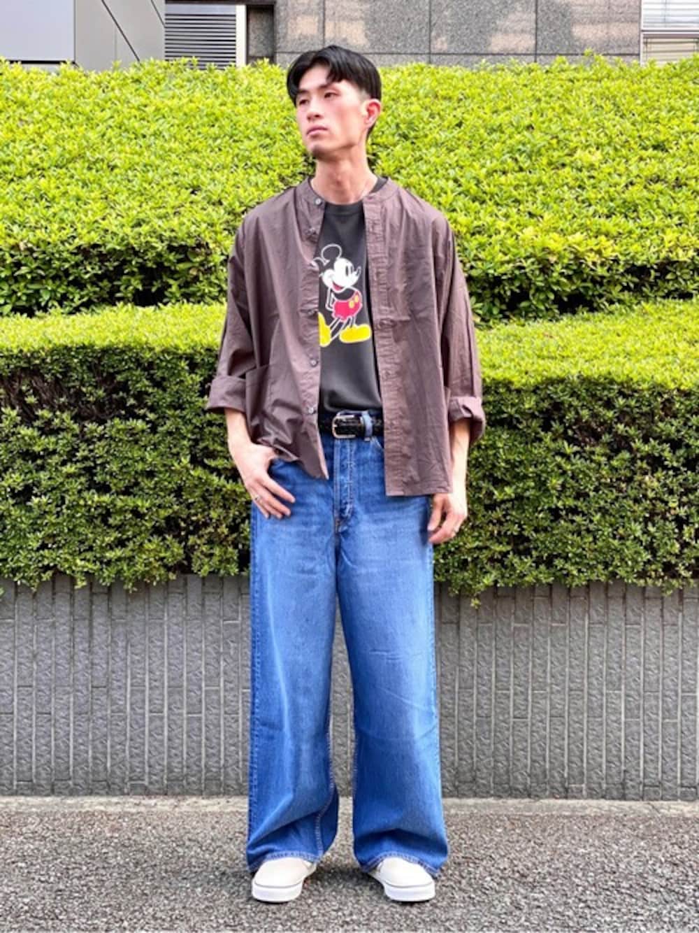 今時期らしい、温度調節の出来るスタイル。デニム×シャツの王道スタイルも、トレンドのプリントを取り入れることで、今っぽく。