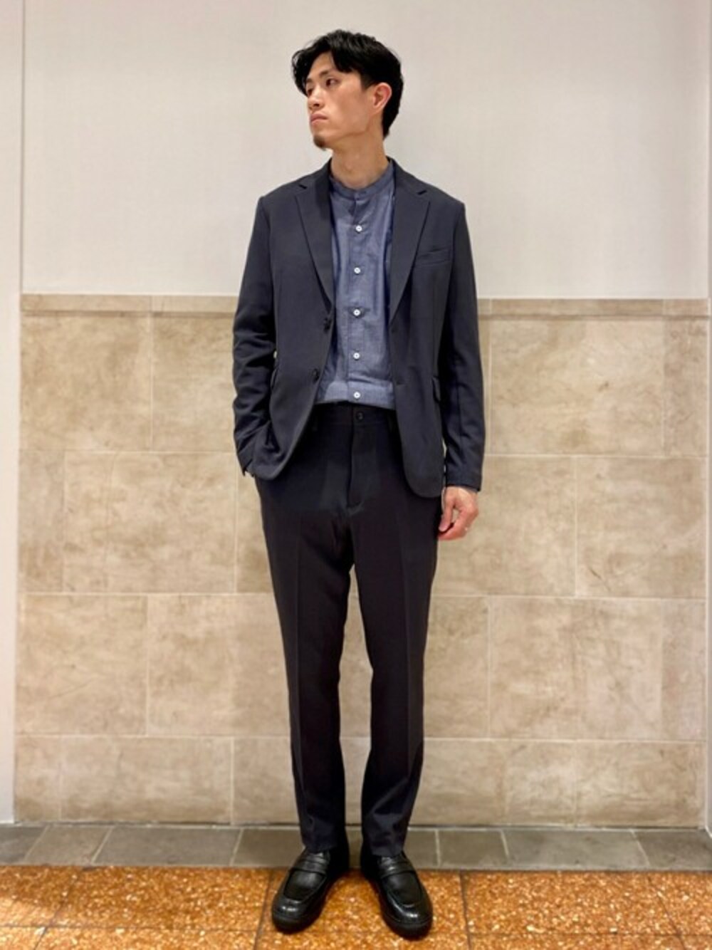 【セットアップ着用可能】4wayツイルジャケット 【セットアップ着用可能】4wayツイルイージースラックス まるで着ていないかのような軽い着心地を実現した、417オリジナル開発素材ジャケットとスラックスです。 全方向縦にも横にも伸びるが魅力なストレスフリー素材。 ストレッチがありながら、しっかりとハリがあるので表情がキレイに見える一着です。 普段サイズ:M/着用サイズ:M(上下ともに) サイズ感:ジャストサイズです。 素材感:伸縮性のある素材感です。 着心地:背中や腕周りに伸縮性があるのでストレスフリーな着心地です。