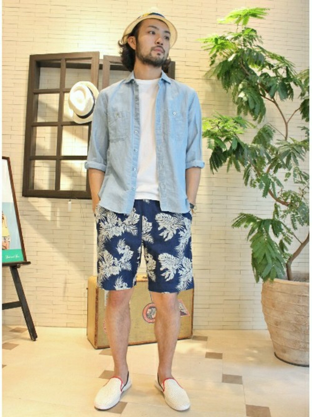 夏に最適の7分袖のシャツはワークテイストながら上品な仕上がりになっているので、ラフなスタイリングでも大人の雰囲気を演出可能です。