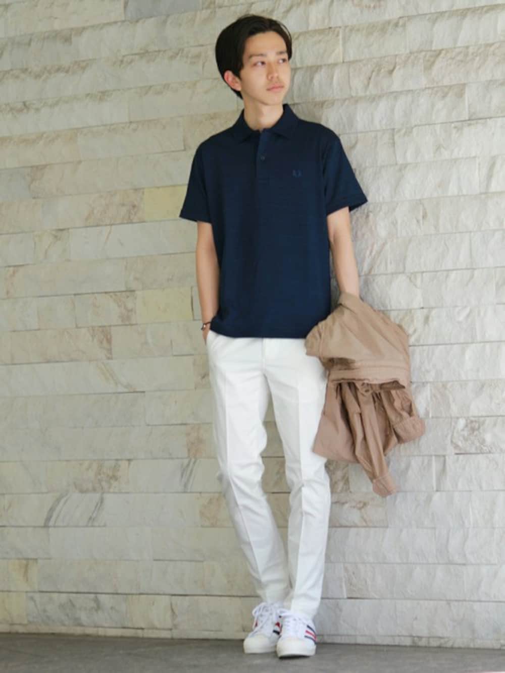 今シーズンは袖をロールアップ仕様にし、通常のポロシャツとは一味違うアクセントをプラス。ソリッドでクリーンな生地感の中に独特なムラ感もポイントです。