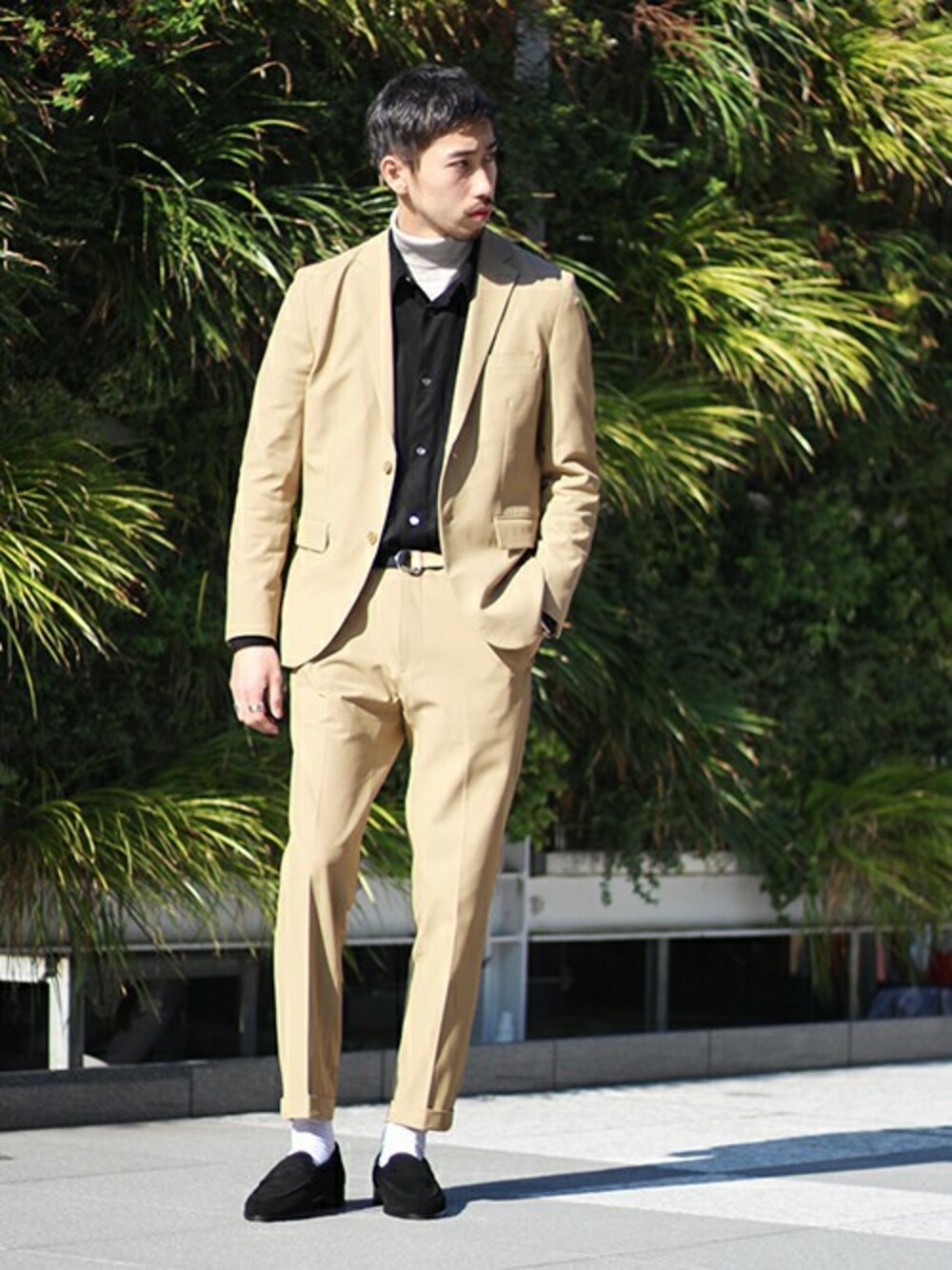 ウールライクなメランジ(杢調)感の表情と縦横共に伸縮性に優れ、アクティブな動きに追従するストレッチを備えた新感覚なセットアップ。ベージュにブラックを取り入れることでエッジの効いた大人カジュアルな雰囲気を演出しました!