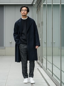 【SUPER140s メルトン チェスターコート】 希少性の高い極細糸”SUPER140's”を使用した高級感溢れるメルトンチェスターコート。 カジュアルスタイルも品良くまとまります。 身長:183センチ/ 普段サイズ: L/ 着用サイズ:L サイズ感:全体的にすっきりとしたサイズ感。 素材感:キメ細やかで肌触りが良い 着心地:適度に厚みがありながら、柔らかく着心地がいい。