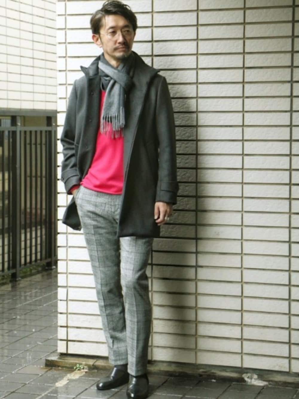 落ち着いたトーンのコーデには明るめのカラーをインナーに。品のあるコートスタイルにはマフラーを合わせるのをお忘れなく。