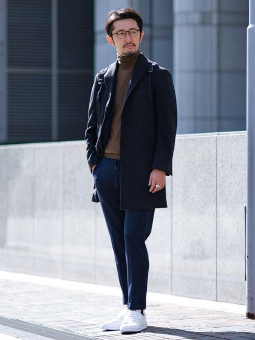 オフィスカジュアルスタイルをイメージしました。 着心地の良い柔らかな仕立てのコートにストレッチ力の高いセットアップを着用。 足元はスタンスミスで柔らかさをプラス 身長:183センチ / 普段サイズ:L / 着用サイズ:XL サイズ感:XLサイズでリラックスして着れる 素材感:しなやかな素材で柔らかい 着心地:軽くストレスレスな着心地
