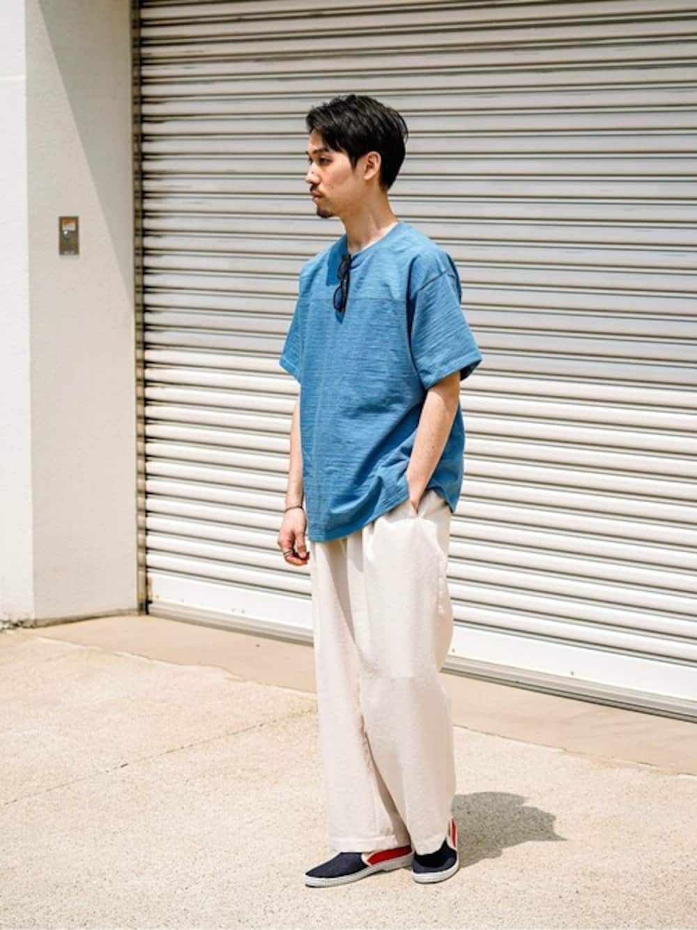 【alvana / アルヴァナ】別注 フットボール Tシャツ alvana オリジナルの糸番手で製作しているタンギス綿を、通常のスラブとは違い、紡績の工程で更にもう一工夫入れる事で肌離れの良さと新しい表情を出す事ができる糸を作製し、希少な編み機で編んだ新しい素材を採用。 パターンについてもアームホールにゆとりを持たせており、絶妙なバランスのリラックス感を演出。 トレンド感を程よく取り入れた大人のデイリーワードローブとしてもおすすめです。 ZOZOTOWNショップクーポンに参加決定! 単実1,000円、土日最大2,000円分のクーポンを発行致します。 ぜひこのお得な機会にEDIFICEをご利用ください。 【対象期間:2020/5/16 0:00 ~ 2020/5/17 23:59】 ※一部対象外の商品もございます。 身長:174cm / 普段サイズ:M / 着用サイズ:3 サイズ感:ややゆとりのあるサイズ感 素材感:コットン地で薄手の夏向けの生地 着心地:肌当たり良く着やすい