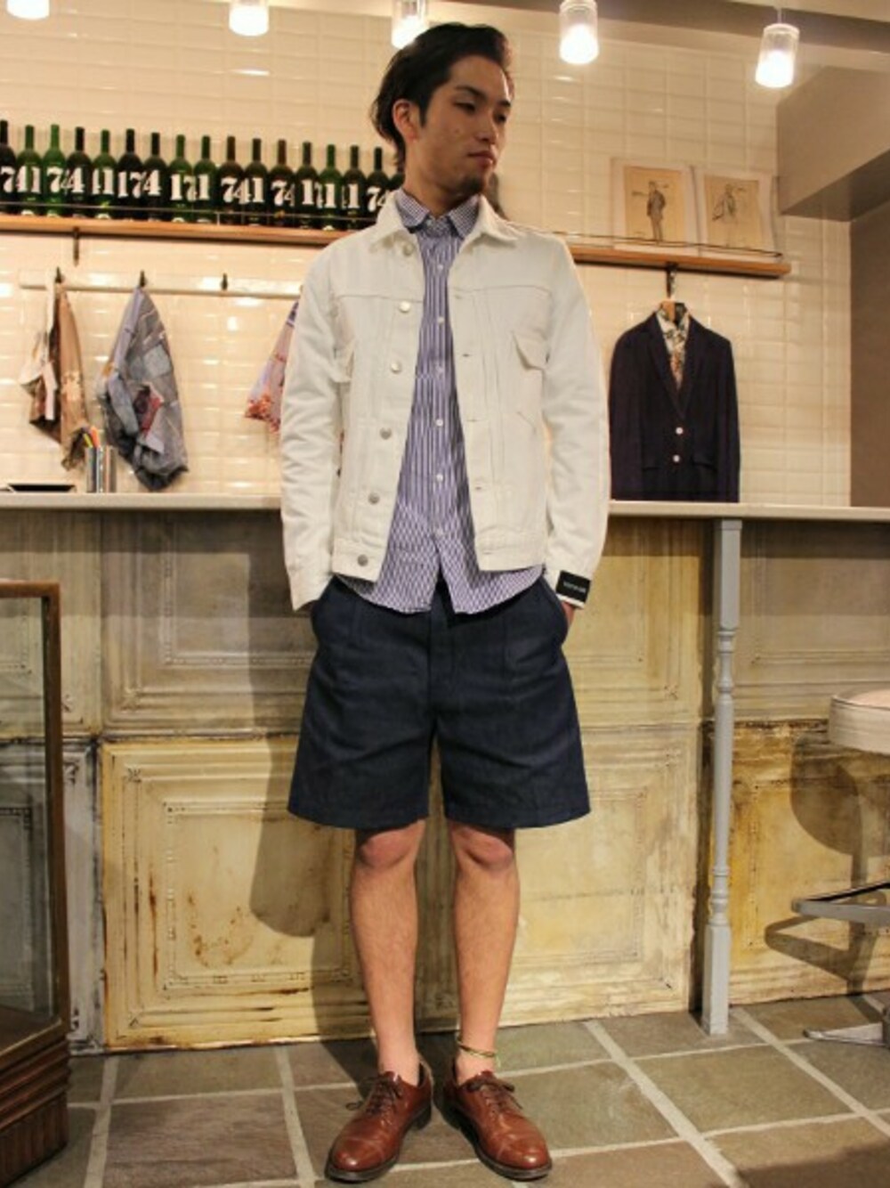 爽やかな印象のホワイトデニムを使ったコーデイネート。 これからの季節はショーツなどと合わせたコーディネートがお勧めです。