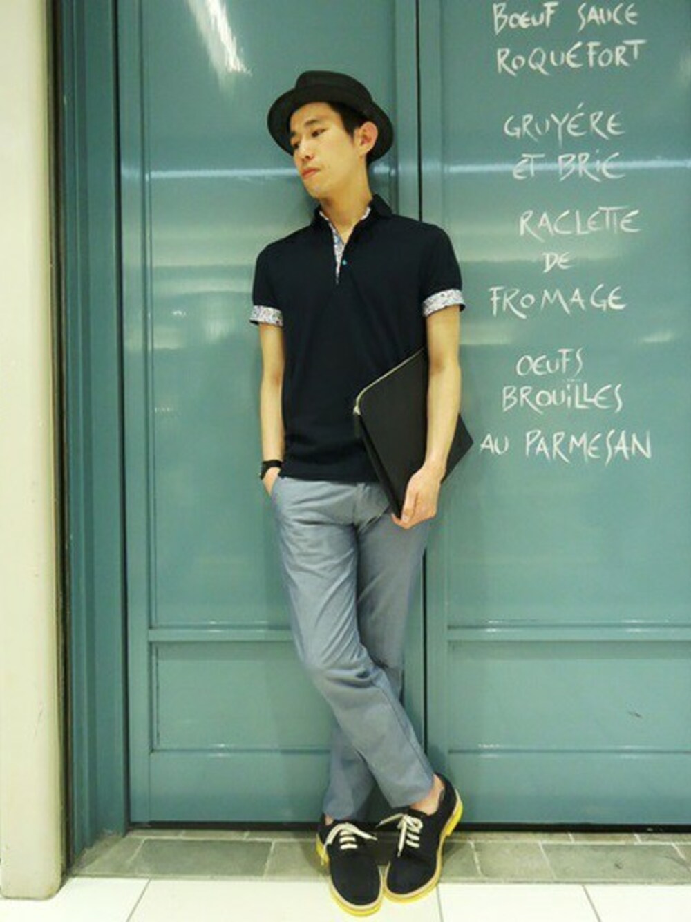 ネイビー×ブルーの色合いで大人の雰囲気漂うシンプルなスタイリングを組んでみました。 カラーソールの色合いが引き立つ組み合わせがポイントです。