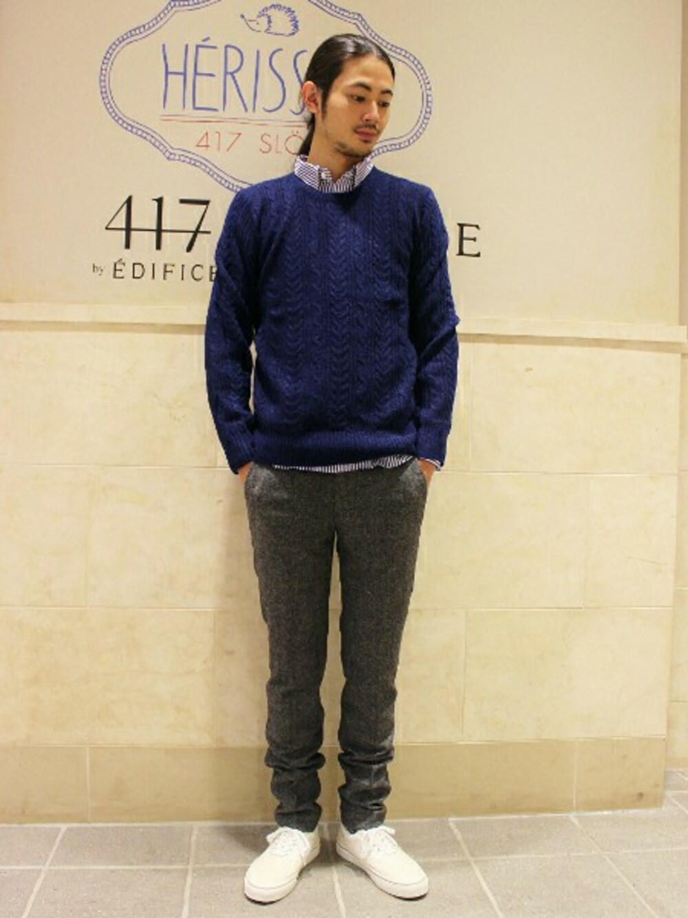417 by EDIFICE渋谷店スタッフ8のニット/セーター「◇7Gアルパカケーブルクルーネックニット」を使ったコーディネート