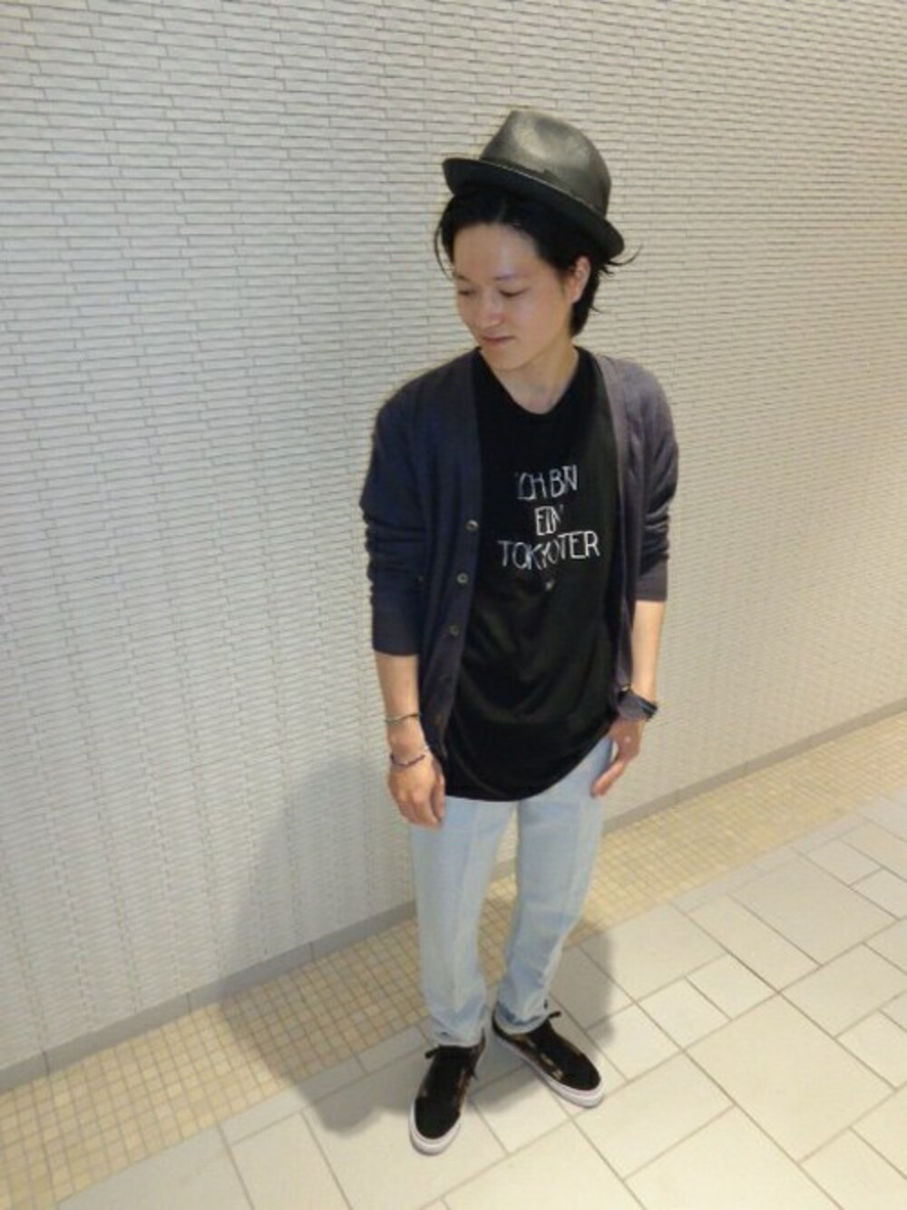 ロックストリートMIXスタイル。トーンを抑えたコーディネートで大人っぽさを演出。ハットやシューズで遊び心を加えました。