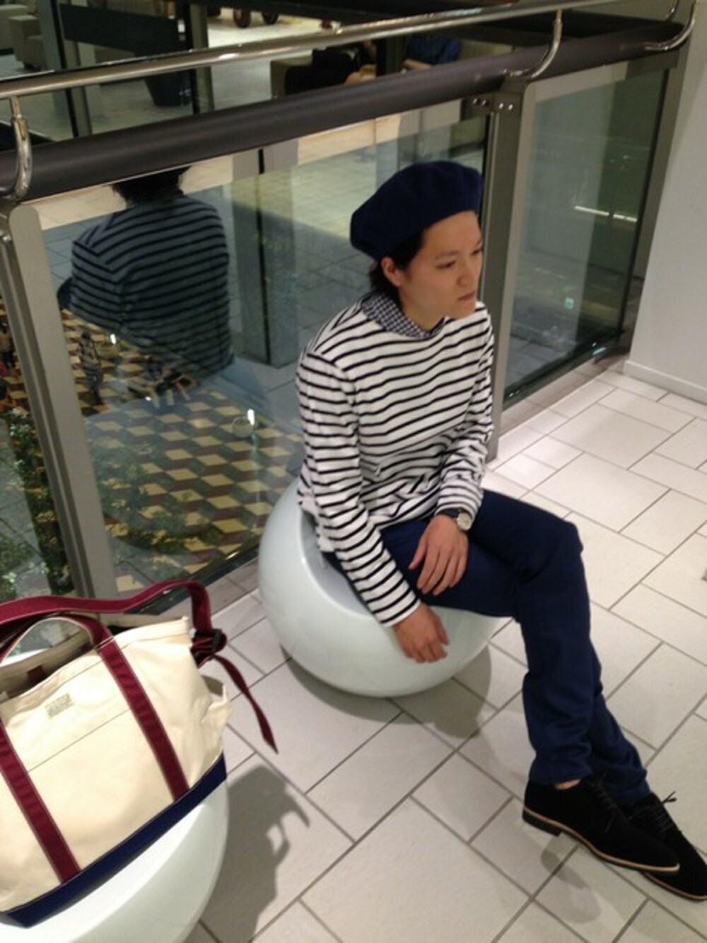 417 by EDIFICE天神店 スタッフのTシャツ/カットソー「リバースウィーブボーダーB/N L/S」を使ったコーディネート