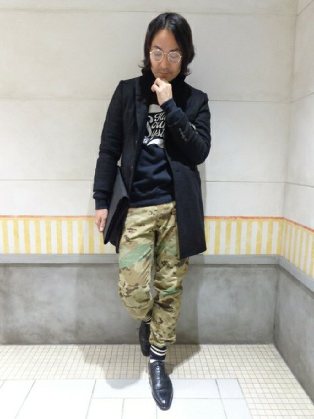 リラックス×モードを意識したチェスターコートスタイリング。ブラックをメインカラーに、足元をドレスシューズにしてカジュアルアップスタイリングしてます。