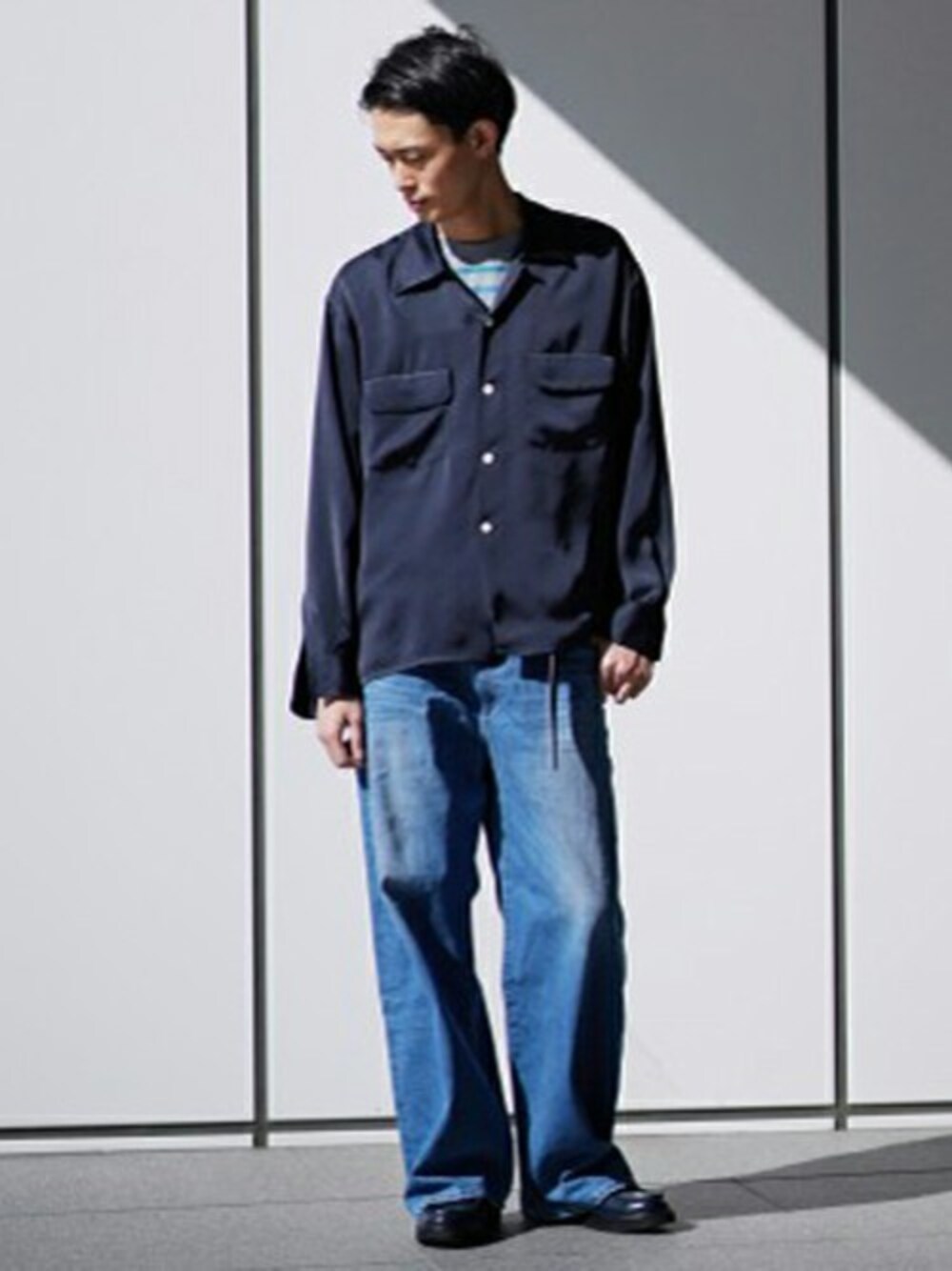 レーヨン素材のシャツに、今の気分でもあるワイドデニムを合わせることで春らしいコーディネートに!足元は別注ハルタのローファーで上品さをプラスしました!
