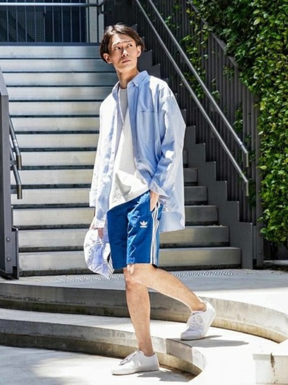 adidas 3STRIPES SWIM SHORTS / EX COLOR ブルーをベースに清涼感のあるアディダスのスイムショーツ。 今季人気のオーバーサイズのシャツをジャケットライクに羽織れば、ほんのりとスポーツテイストが香る大人カジュアルスタイルに。 身長:178cm/普段サイズ:L / 着用サイズ:M サイズ感: 膝に少しかかるくらいの丈感。 素材感:ハリのあるしっかりとした生地 着心地:足の運びを妨げないので履きやすいです。
