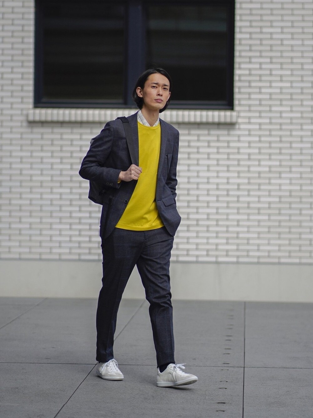 メランジチェック セットアップ 2ボタンジャケット 現代のON/OFFどちらにもはまりやすい落ち着きあるチェックのセットアップ。 目を惹くカラーニットを挿すセットアップスタイルは今シーズン注目です。 ********************** 【スタッフ着用コメント】 身長:178cm / 普段サイズ:L / 着用サイズ:L サイズ感:ジャストサイズ 素材感:柔らかくサラッとした素材感 着心地:軽い着心地 **********************