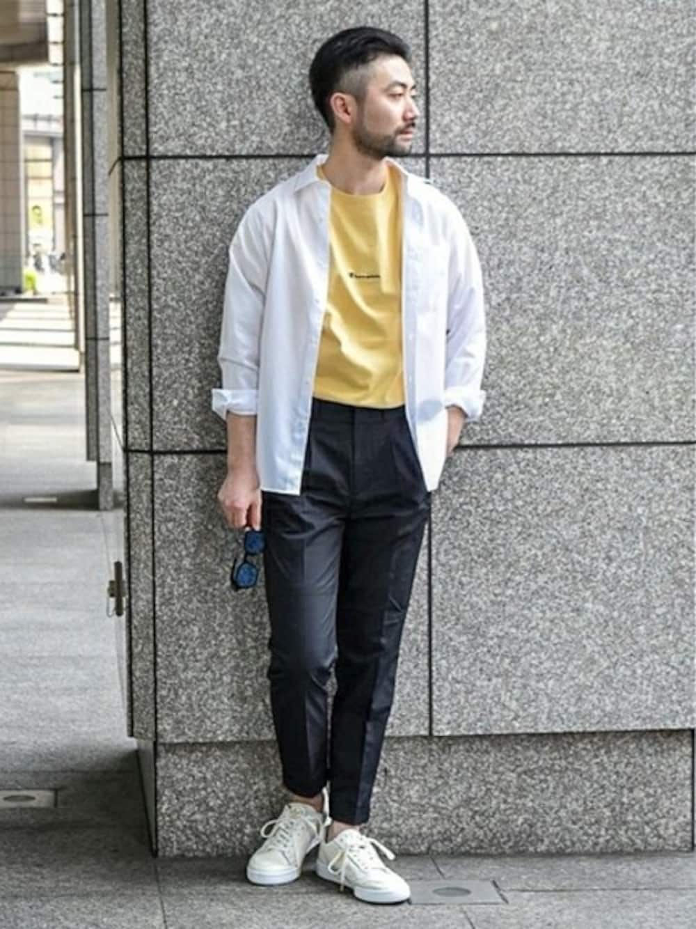 Champion×EDIFICE / チャンピオン別注 SMALL LOGO TEE モノトーンの中に黄色やゴールドの差し色を入れ、シックなスポーティスタイルの表現にしております。 身長/171cm 普段のサイズ/Mサイズ 着用サイズ/Mサイズ 生地感:肉感のあるコットンの為肌馴染みの良い素材になります。 着心地:ゆったりとして、リラックス感のある着用感になります。