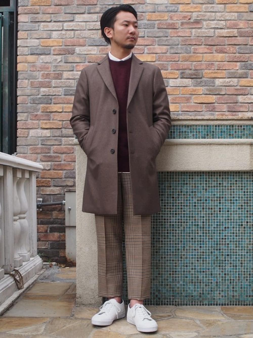 YUYAのチェスターコート「Super100sウール メランジチェスターコート」を使ったコーディネート
