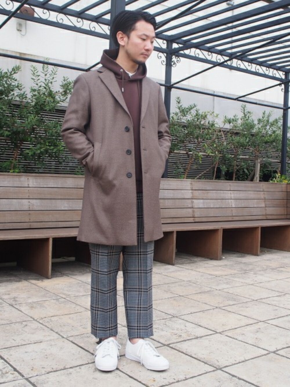 YUYAのチェスターコート「Super100sウール メランジチェスターコート」を使ったコーディネート
