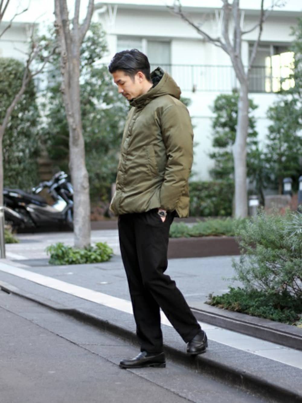 光沢感のあるカーキが綺麗なダウンは着心地も抜群です!