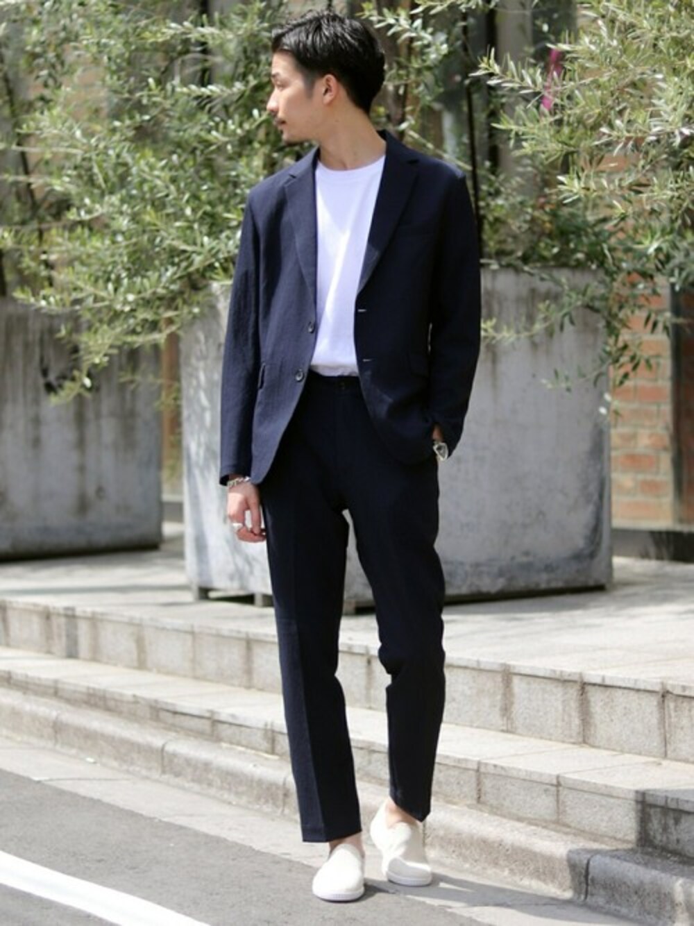 夏のセットアップスタイル。 素材感で抜け感ある大人な着こなしに。