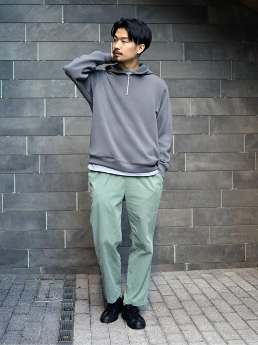 tetsuya(417 EDIFICE Online Store)のパーカー「◆ライトダンボール ハーフジップパーカー」を使ったコーディネート