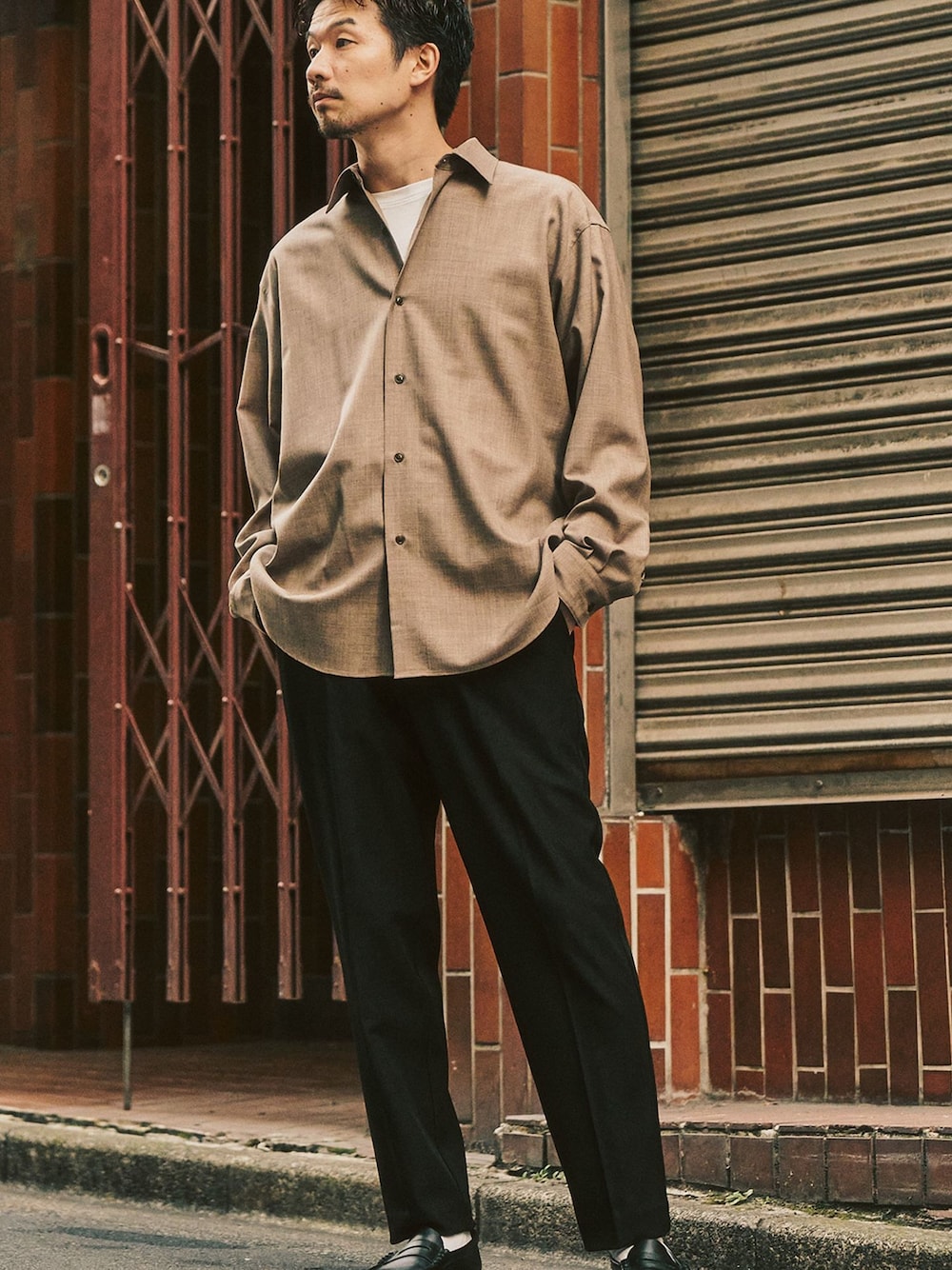 tetsuya(417 EDIFICE Online Store)のスラックス「”4WAYストレッチ” 1タックパンツ」を使ったコーディネート