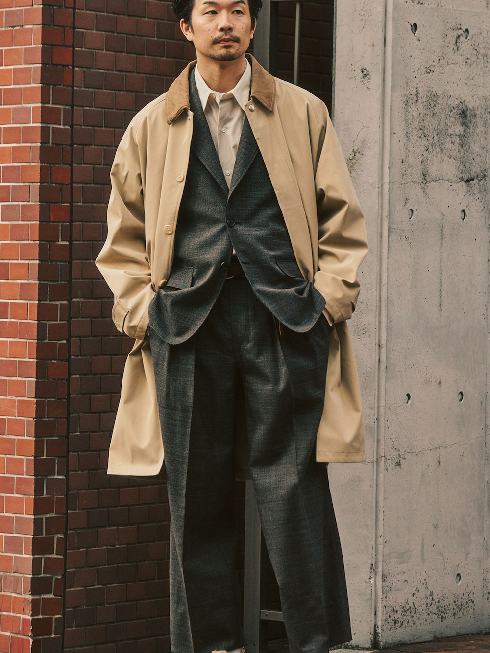 【Windrisp】コート 軽やかでシャープな印象を纏える、Windrisp Coat。 風を受け流すようなハリ感のある素材と、すっきりとしたシルエットが特徴です。 コットン見えの素材に、防風&撥水加工を施した3シーズン対応型アウター。 衿にはビーガンレザーを使用し、トレンド感ある仕上がりにしています。 程よくゆとりを持たせた設計で、インナーを選ばずさっと羽織れる使い勝手の良さも魅力。 ミニマルなデザインながら、着用時のラインにこだわり、スタイリング全体をクリーンに引き締めます。 季節の変わり目から長く活躍し、オン・オフ問わず取り入れやすい一着。 軽快さと機能美を兼ね備えた、現代的なコートです。