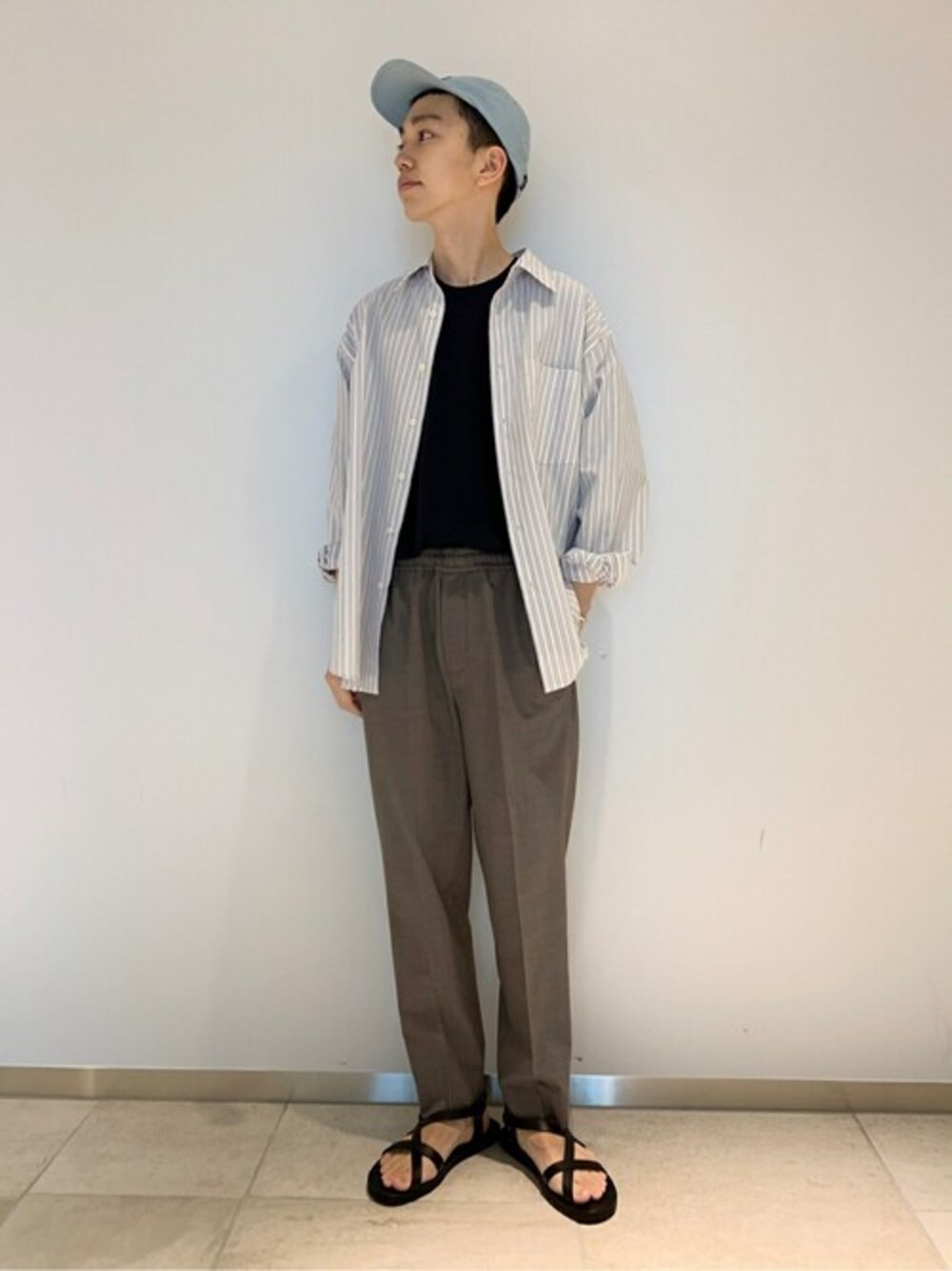 【handvaerk / ハンドバーク 60/2 クルーネックポケットTシャツ】 足元はレザーサンダルでこなれ感をプラス。 身長:175センチ、痩せ型 / 普段サイズ:M/ 着用サイズ:S サイズ感:非常にゆったりしたリラックス感あるシルエット 素材感:上品で柔らかな生地感 着心地:肌触りよく快適な着心地