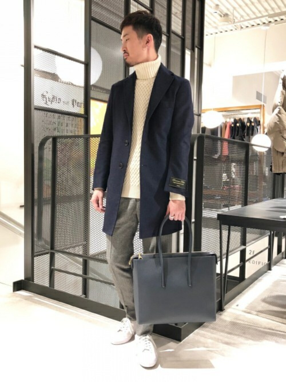 上品さ際立つカシミヤブレンドチェスタースタイル 生地から選定しEDIFICEでは冬の定番モデルカシミヤ混チェスターコート。ONOFF兼用で着用頂けるモデルなので、カジュアルスタイルに上品さプラスして頂けるモデル。アランニットに合わせる事で、クラシックな雰囲気も漂わせた大人のコートスタイルに仕上がります。合わせている鞄は、拘りのレザーバッグを展開する"TOFF&LOADSTONE"の物。