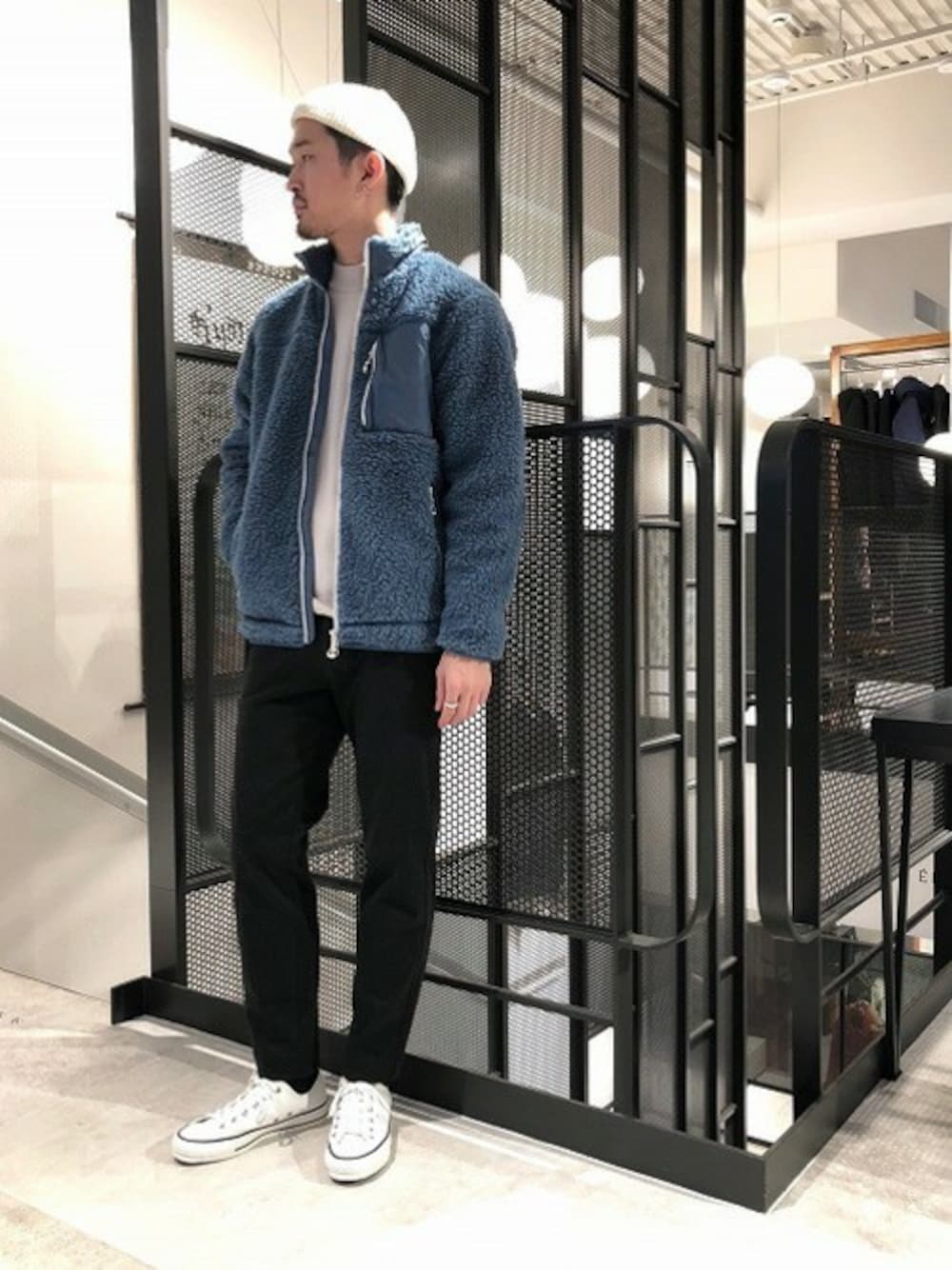 DESCENTE BLANC ボアジャケット ひときわ際立つボアフリースを使用したスタイリング。デザインの主張があるボア素材にはその他アイテムをベーシックにまとめると季節感がより際立ち、洒落感のある印象に。インナーにはモックネックニットを合わせる事で、大人らしい落ち着きのある印象も取り入れています。