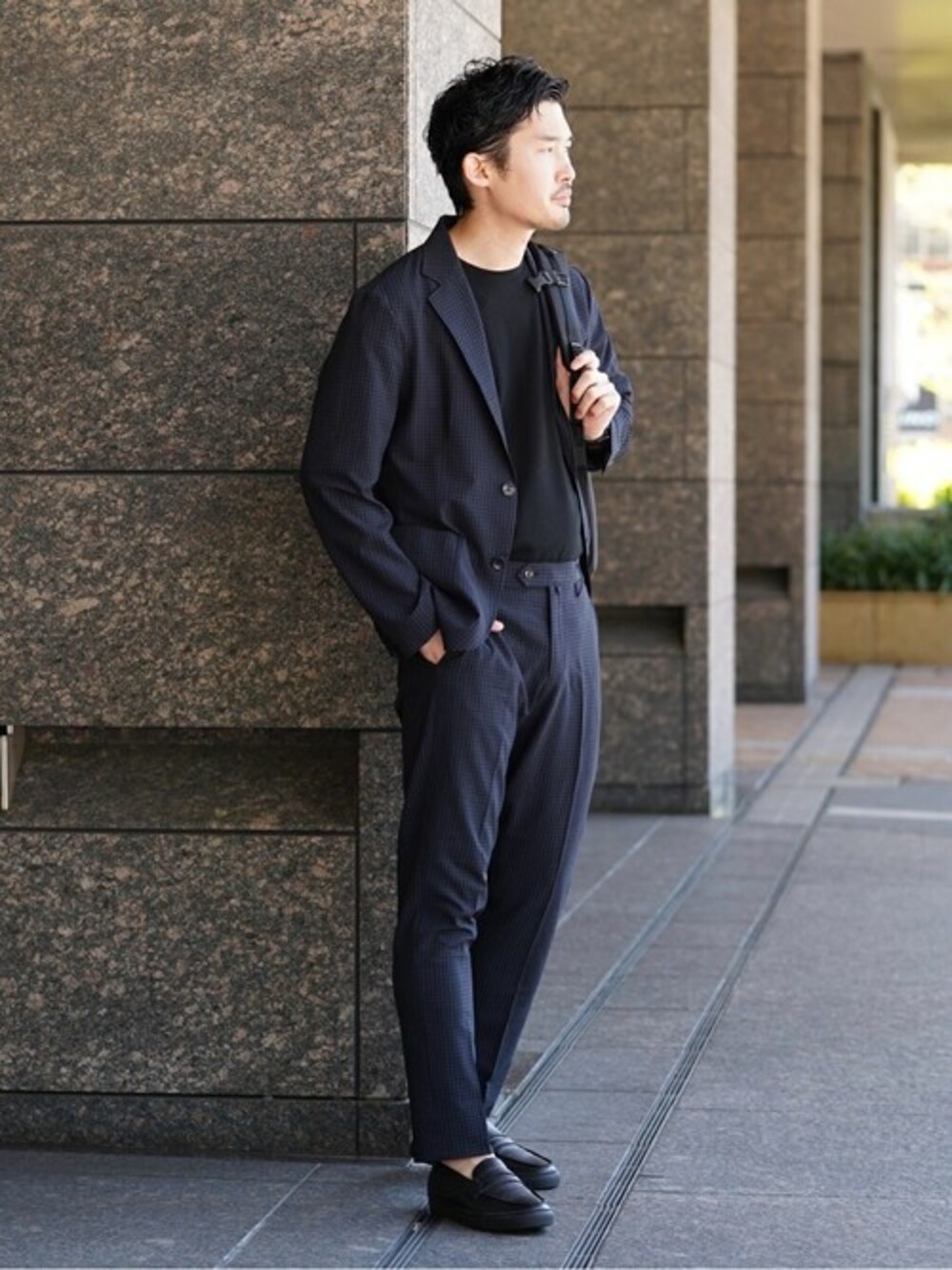 IDUTSUのテーラードジャケット「【FUNCTION MOBILE / ファンクションモバイル】EVALET シアサッカー ジャケット【セットアップ着用可能】」を使ったコーディネート