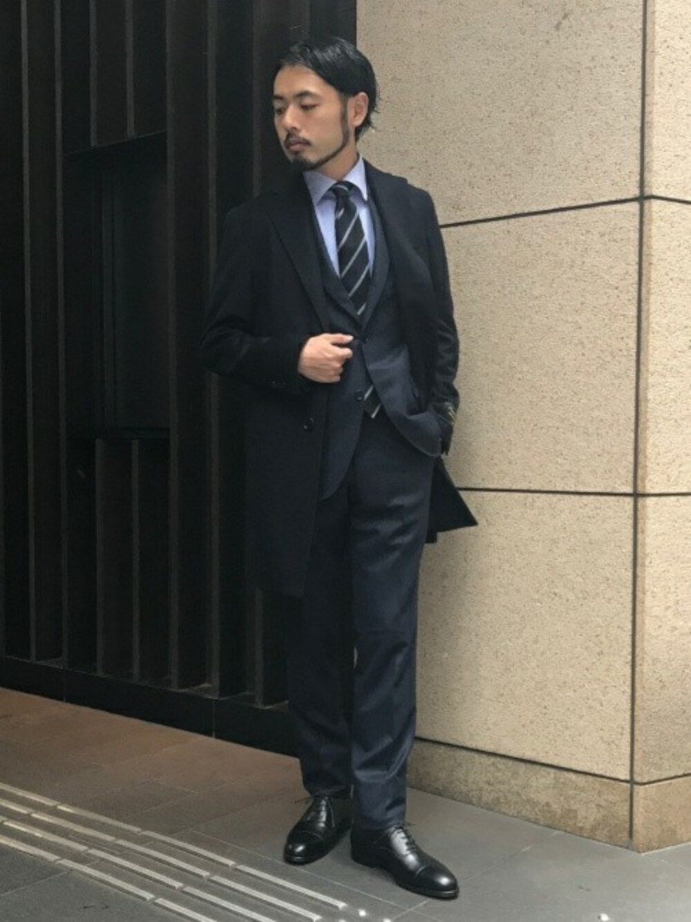 正統派スーツスタイル ブルー系でまとめたスーツスタイルは誠実さを感じさせます。