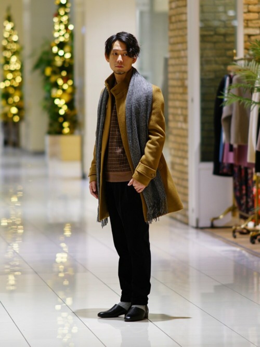 SHINOのステンカラーコート「SUPER110s BLEND スタンドコート」を使ったコーディネート