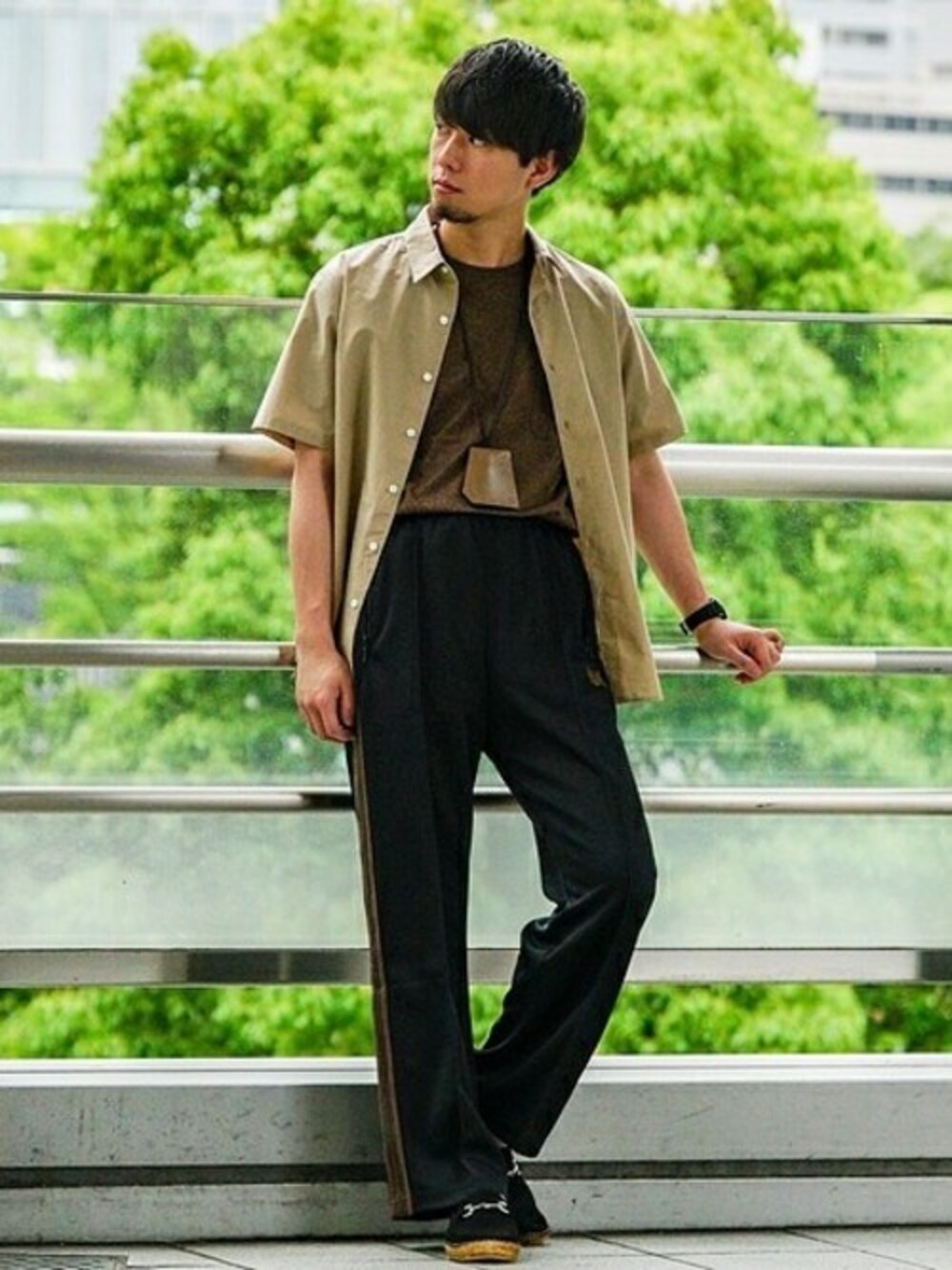 C/Si ブロード S/S ワイドレギュラー ベージュ×ブラックでメリハリをつけたスタイリング。 やや光沢のある生地で、軽さと上品さを兼ね備えたシャツなら、大人のスポーツMIXスタイルにもハマります。 身長:168センチ / 普段サイズ:S / 着用サイズ:S サイズ感:Sサイズで身巾・肩周りにややゆとり 素材感:柔らかくハリのある生地 着心地:軽くさらっとした着心地