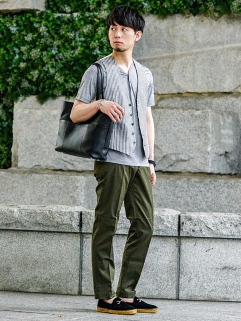 LARDINI EX コットンシャンブレーストライプジレ Tシャツ1枚で、という方にはジレで洒脱な印象を。 季節感のあるストライプ柄に落ち着いたカーキで、大人のオフスタイルを演出。 身長:168センチ / 普段サイズ:42 / 着用サイズ:42 サイズ感:42サイズでジャスト。 素材感:程よい厚みがあり、軽い 着心地:軽量性の高い生地でさらっとしている