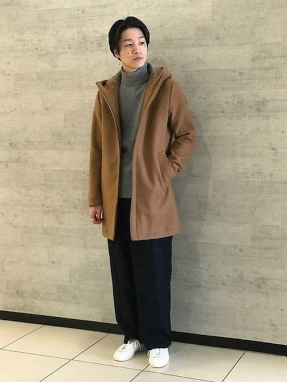 fujimoのステンカラーコート「メルトンフードコート」を使ったコーディネート