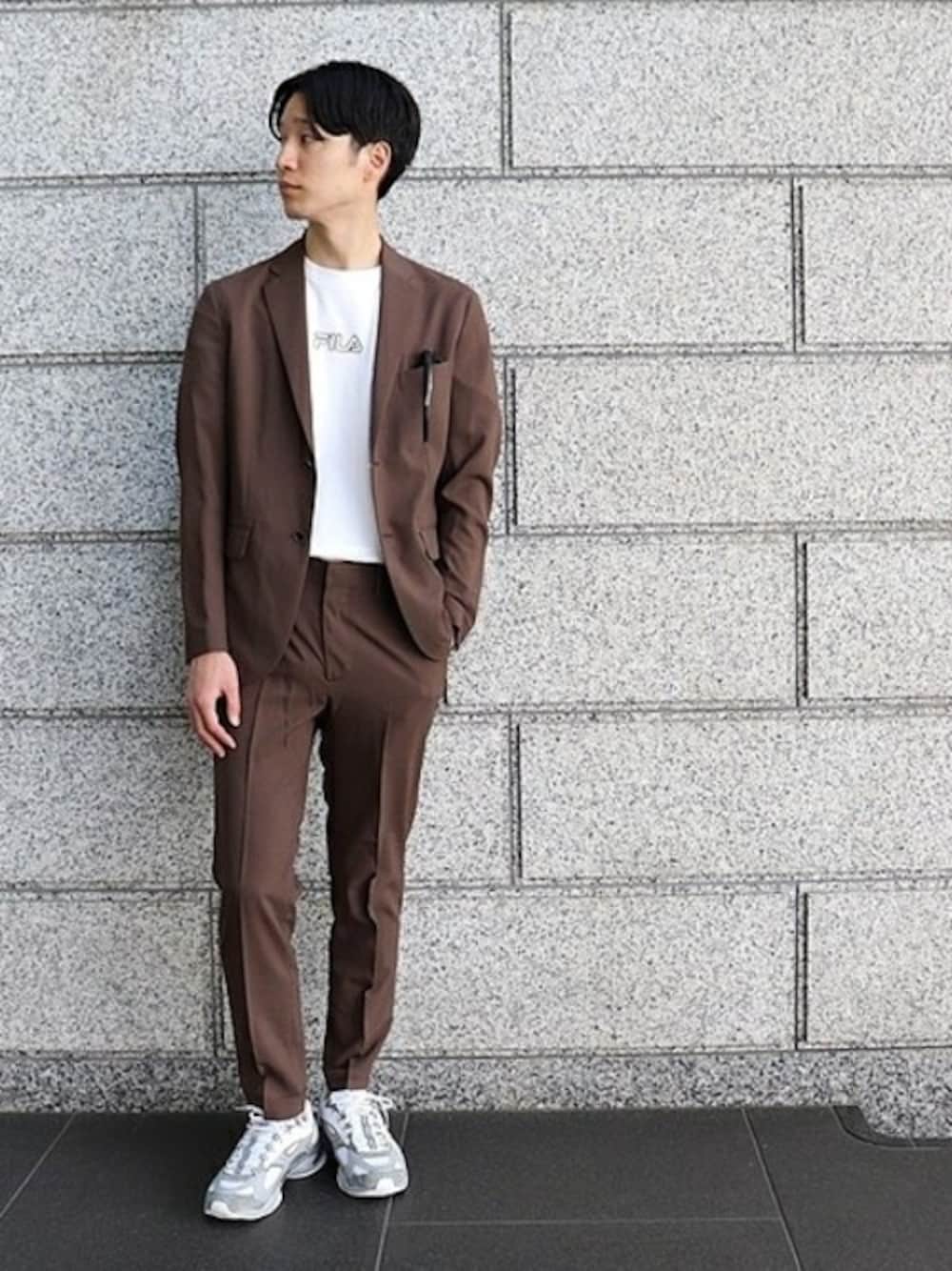 fujimoのテーラードジャケット「CLICK ライトメランジトロ 2ボタン ジャケット」を使ったコーディネート