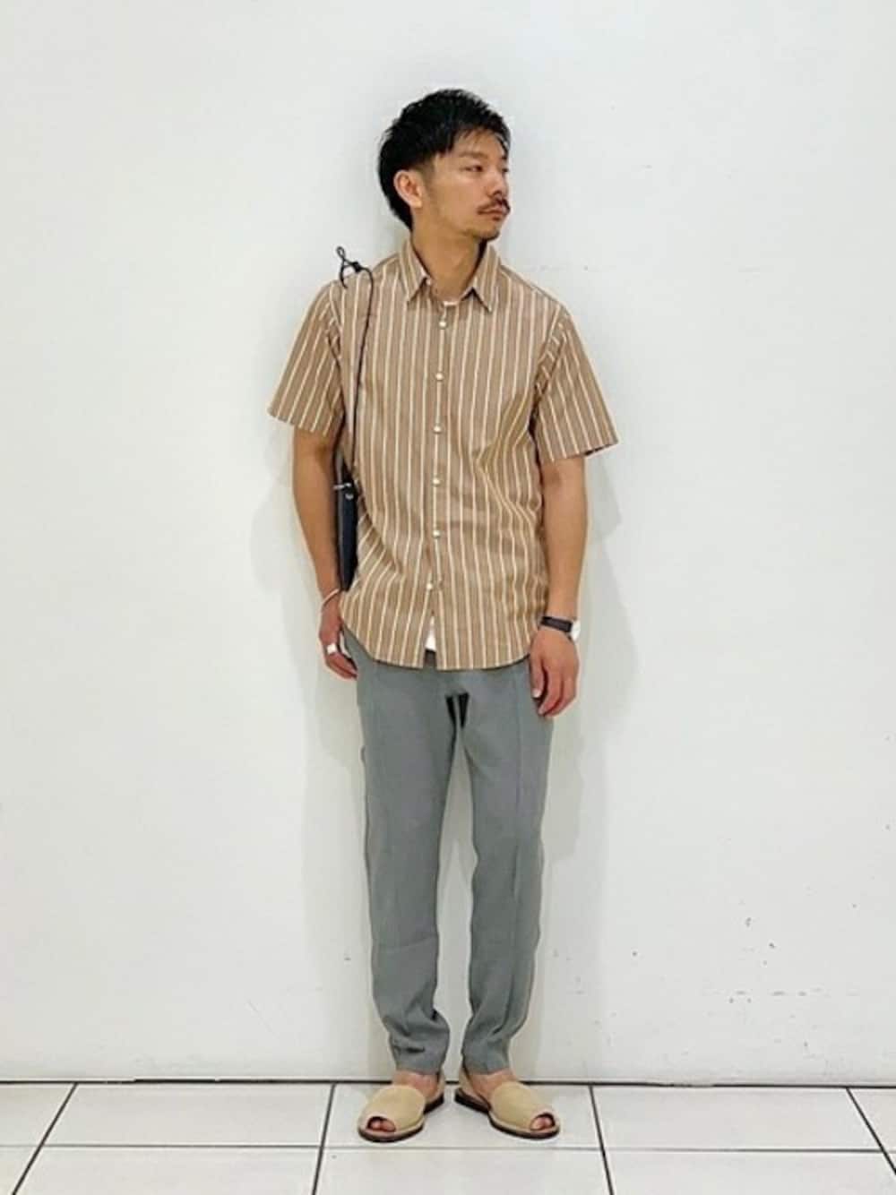 stripe S/S ワイドレギュラー ゆったりとしたシルエットで夏に羽織りたい一品となっています。 身長:170cm/普段サイズ:S/着用サイズ:M サイズ感:身幅が少し大きめなのでリラックス感がある 素材感:コットン特有のパリッとした表情 着心地:軽くサラッとしている