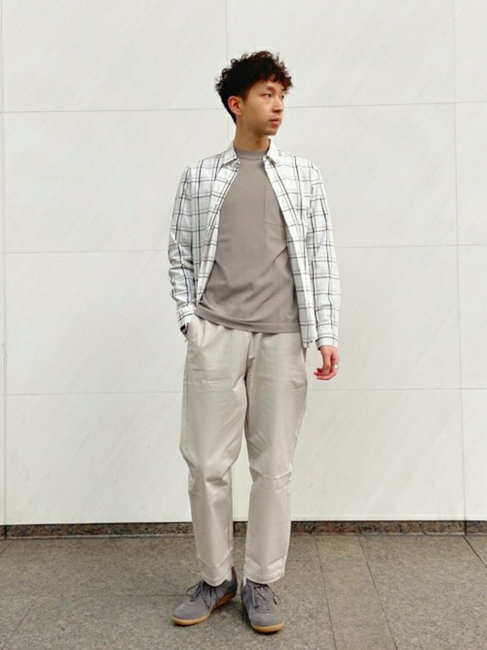 【2PACK SHIRTS】 ワントーンでまとめた417らしいスタイリング シャツをアウター感覚で1つ大きいサイズで着用しこれからの季節でも楽しめるのを意識しました。 身長 : 178 / 普段サイズ : M、L / 着用サイズ : L サイズ感 : ジャストめ 素材感 : サラッとしている 着心地 : サラサラした肌触りで快適