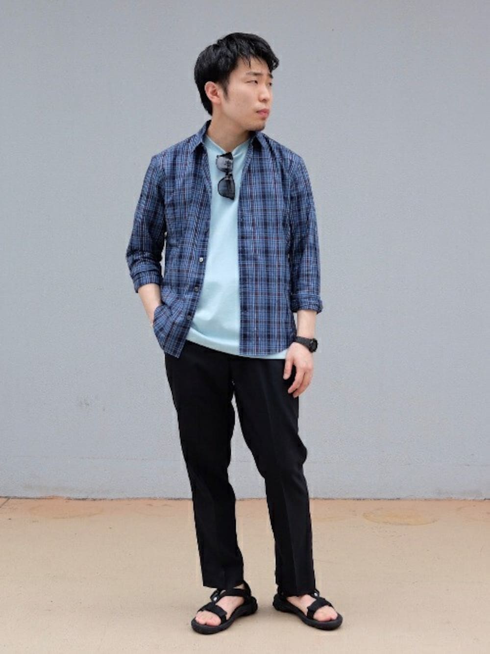 インディゴで染めたシャツは、リネン素材で夏場まで活躍する逸品です。 シャツとインナーの色は同系色で統一感のあるコーディネートに。 【INDIGO リネン ノーカラーシャツ】 普段サイズ:M/ 着用サイズ:S サイズ感:細身 素材感:薄手の生地 着心地:シャリ感がありサラッと着れる