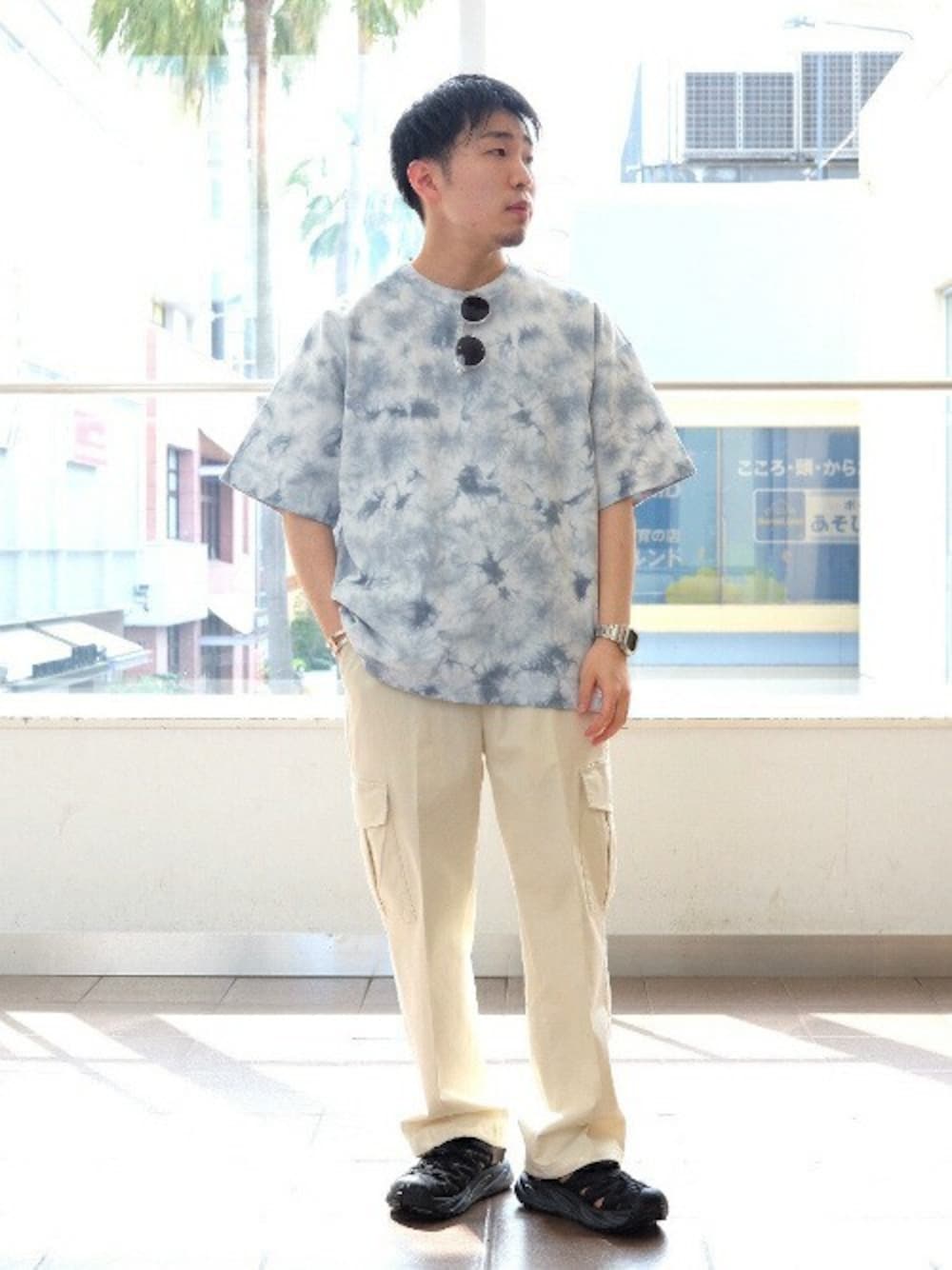ブルー×ホワイトの王道のスタイリングには、サンダルや小物使いでリラックス感のあるコーディネートに。 【50/-ポンチ タイダイ クルーネック TEE】 普段サイズ:M / 着用サイズ:M サイズ感:ゆったり 素材感:厚手の生地 着心地:厚手でしっかりした生地なので1枚で着やすい