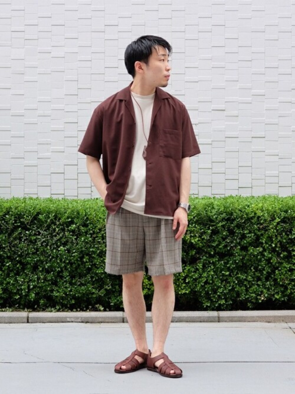 トップスのボルドーカラーのシャツはベージュと掛け合わせてトーントーンのスタイリングに。 シューズと小物で色を広い、統一感あるコーディネートに。 ************************ トップス:【ドライタッチトロ オープンカラーシャツ】 普段サイズ:M / 着用サイズ:M サイズ感:ややゆったり 素材感:薄手の生地 着心地:サラッとしている為真夏でも着やすい着心地です ボトムス:【TRAD ワイドショーツ】 普段サイズ:M / 着用サイズ:M サイズ感:ややゆったり 素材感:やや薄手 着心地:コットン素材でさらっと着れます ************************