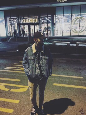 「Levi's(リーバイス)のアイテム(デニムジャケット、ブルー系)」を使った、王銘緯さん(メンズ)の秋コーディネート