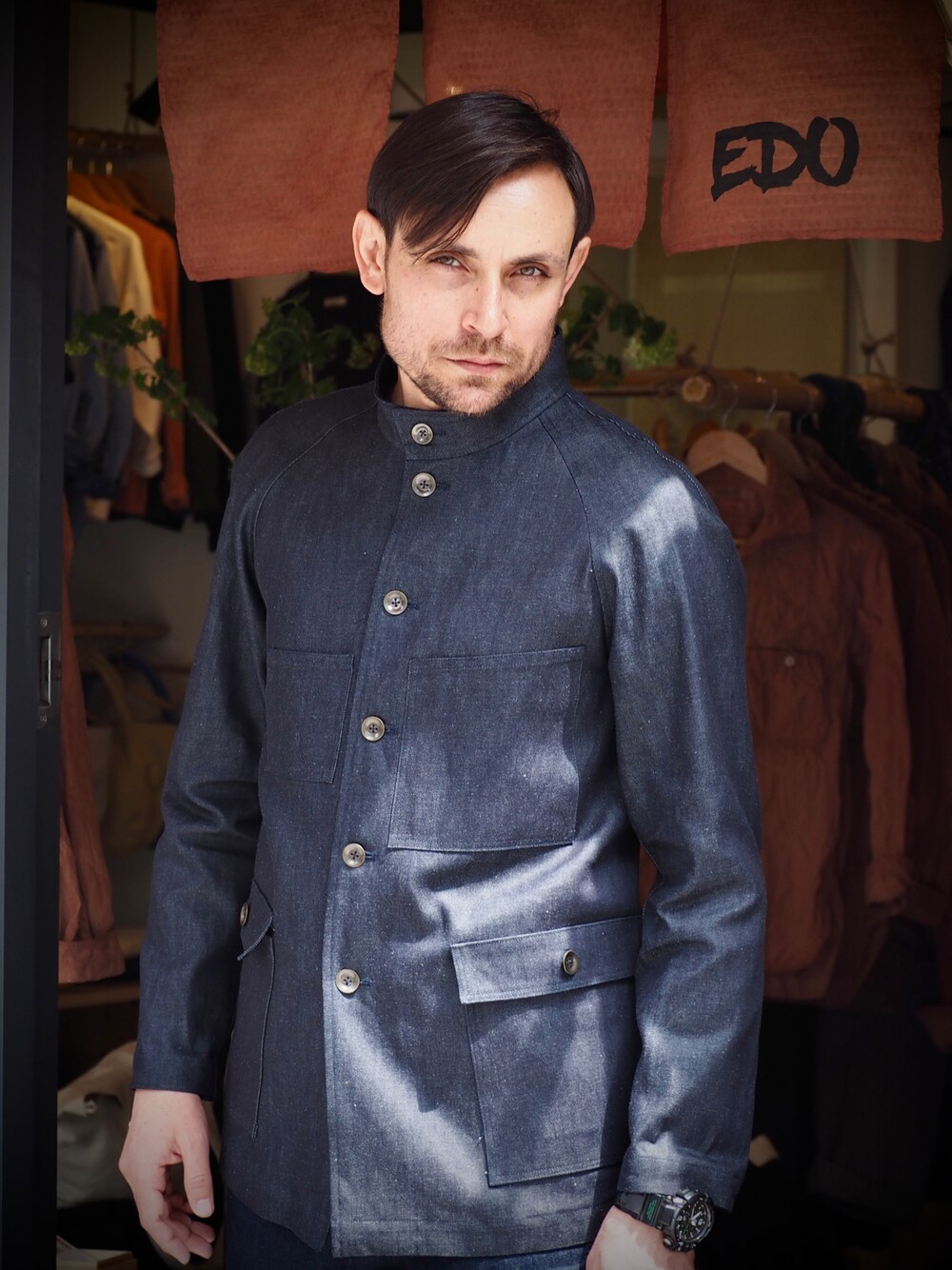 JK-004 ヘンプジャケット 旧日本鉄道の作業服をアイデアソースに できる限り細身に見えながらも、十分な可動域を実現した立体的なモデリングにこだわった。 アンティークゴールドのボタンを全て閉めてシャツジャケット風に着るとスタイリッシュになるし、ボタンを開けて羽織っても決まるシルエットになっている 複数のポケットをデザイン的にあしらいながら、メインのポケットは上からも、横からも手を入れる事が出来る。 カジュアルなイメージにもスタイリッシュにも着こなせるワークテイストブルゾン 軽いオンスを使用しているので、温度差のある季節の温度調整にも活躍する事間違いない。 【サイズ】 M 【素材】 綿78%,ヘンプ22% MADE IN JAPAN https://e-d-o.stores.jp/items/6254f16d6b87c32417d9721d