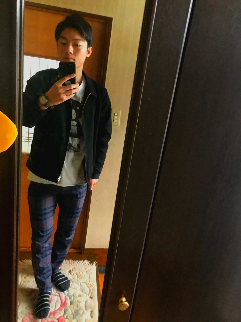 hysteric glamourとDickiesのコラボによるアイゼンハワージャケットと 同じくhysteric glamourの ジップスラックスパンツを使ってコーデ 合わせやすいかつシンプルな黒と ブルー系のチェックと少し目立つパンツで 遊び心を入れてみました!