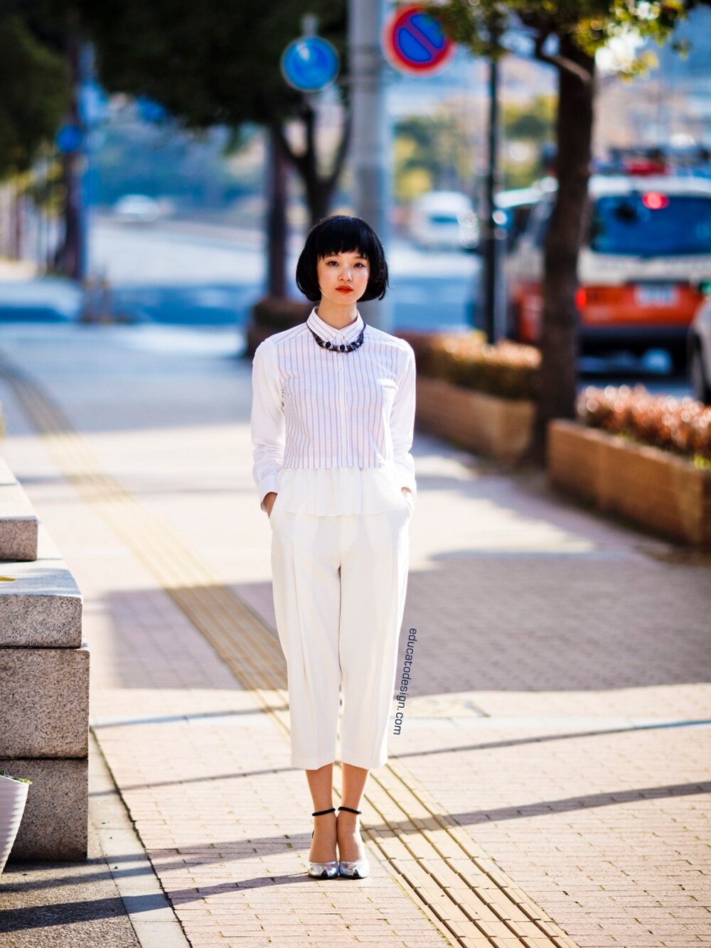 ホワイト系のシャツ/ブラウスを着用したレディースの冬コーディネートの1枚目の写真