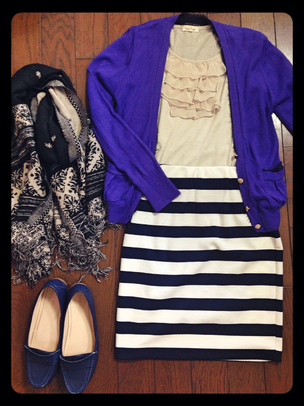 今日は暖かいのでストールで温度調整! ちょっと季節外れかな?って思ったけど、お気に入りのボーダースカートを。カーディガン合わせたらまだまだ大丈夫だった! インナーはだいぶ前に購入したRope Picnic. カーディガンとの相性抜群です。 銀座勤務になってから、周りの素敵女子に触発されたのかスカート率高くなったなー。
